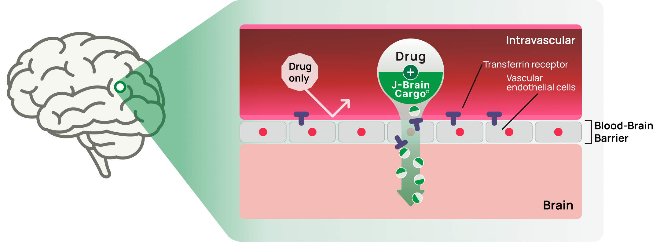 J-Brain Cargo® is JCR Pharmaceuticals’ proprietary blood–brain barrier technology that enables the delivery of biopharmaceuticals to the central nervous system.