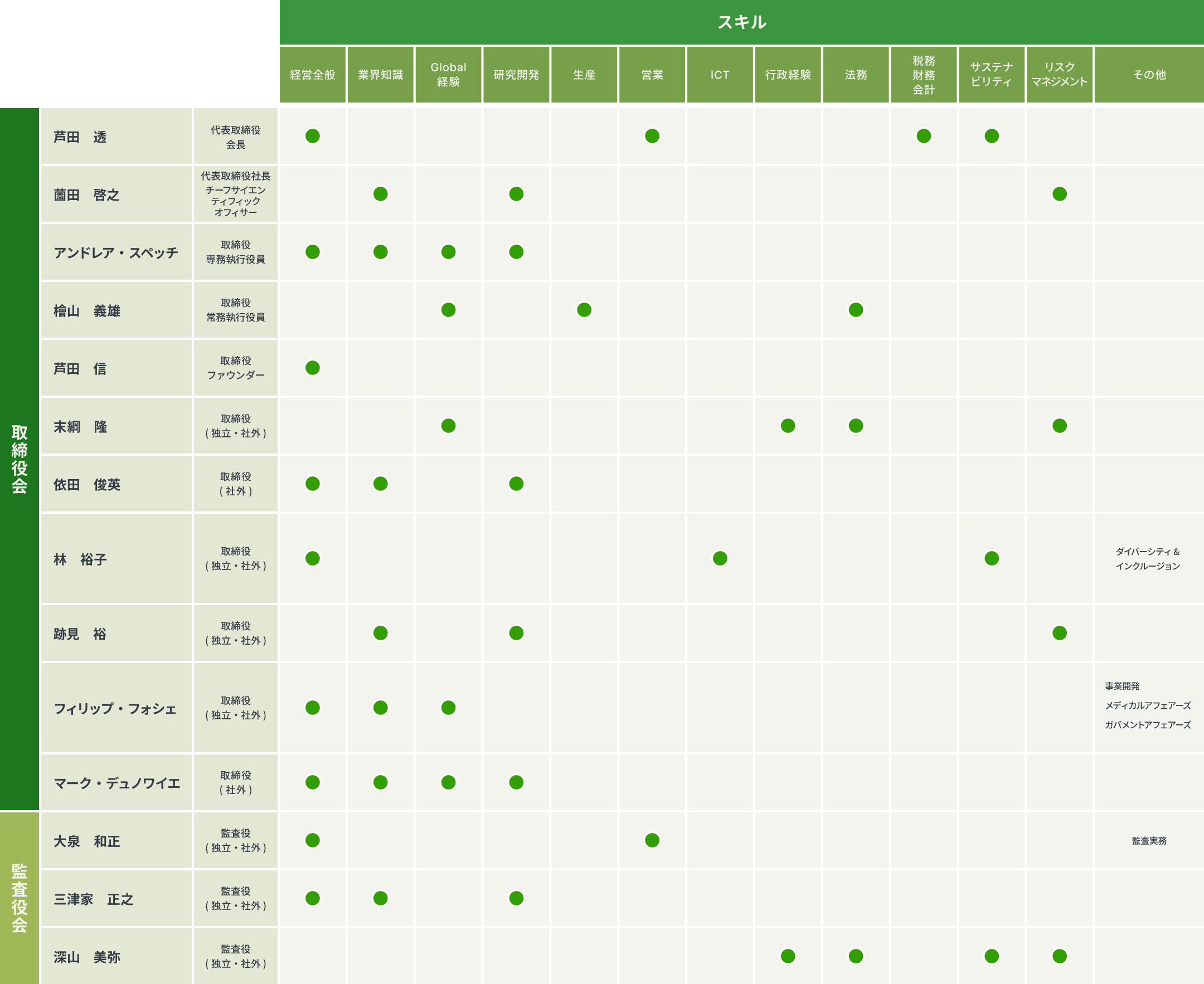 社外取締役の依田俊英氏は株式会社メディパルホールディングス専務取締役を兼務しています。なお、JCRと同社との間で業務資本提携契約ならびに複数の開発投資契約を締結しており、株式会社メディパルホールディングスはJCRの株式の23.86%を保有しています。社外取締役のMarc Dunoyer氏はアレクシオン・アストラゼネカ・レアディジーズ最高経営責任者を兼務しています。なお、JCRと同社との間で「J-Brain Cargo®」等を用いたライセンス契約を3つ締結しています。社外取締役および社外監査役によるJCR株式保有状況は、有価証券報告書に記載しています。その他JCRと社外取締役および社外監査役との間には特別な利害関係はありません。